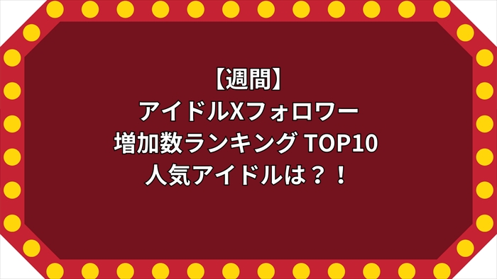 • 【週間】アイドルXフォロワー増加数ランキング TOP10 人気アイドルは?!